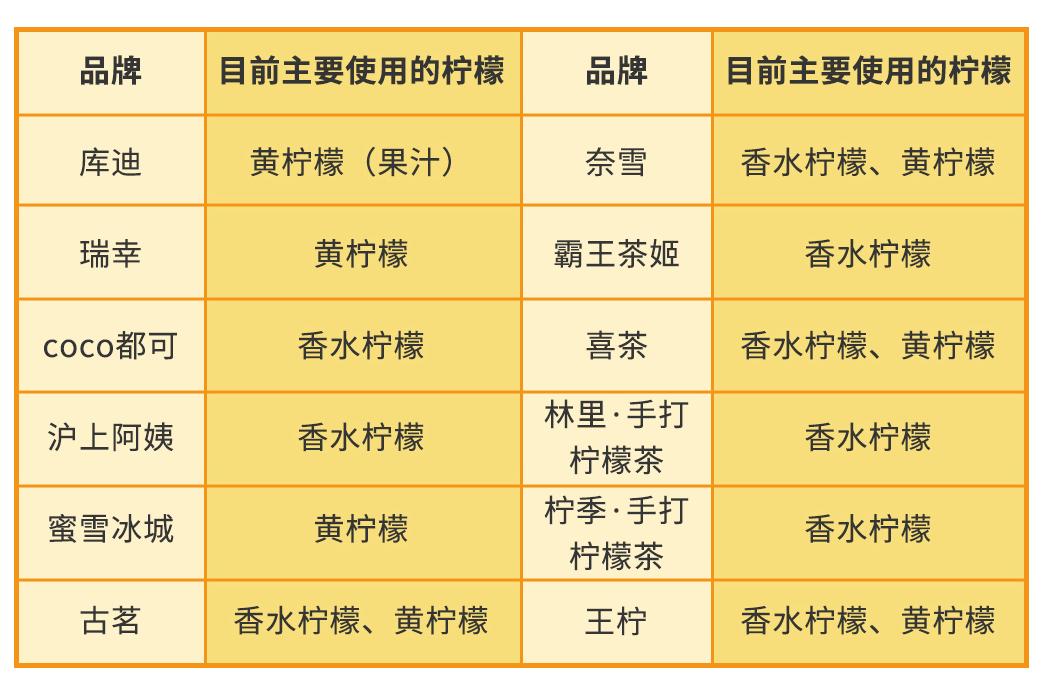 有意思报告走访发现,不同咖啡茶饮品牌对柠檬品种的使用存在差异。
