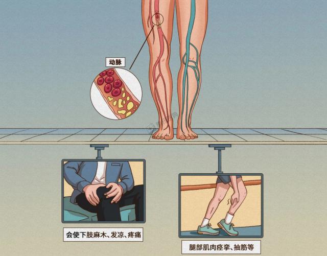 发生在下肢,会使下肢麻木、发凉、疼痛,腿部肌肉痉挛、抽筋等。