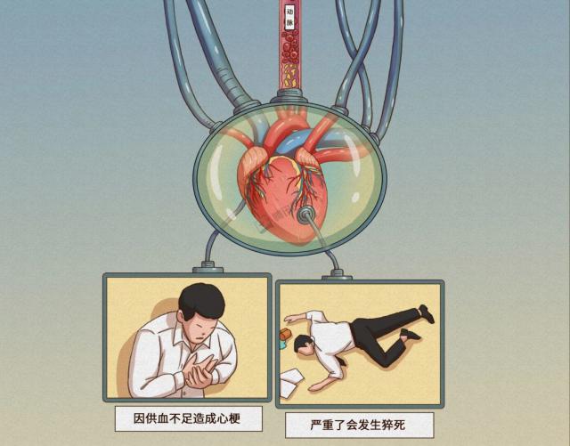 如果血栓出现在心脏,会因供血不足造成心梗,严重时导致猝死。