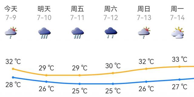 深圳气象台预报,今天我市多云,有(雷)阵雨;气温 28 ℃ -32 ℃;西南风 3 级,沿海、高地和海区阵风 6 - 7 级;相对湿度 65% - 95%。
