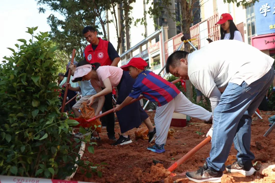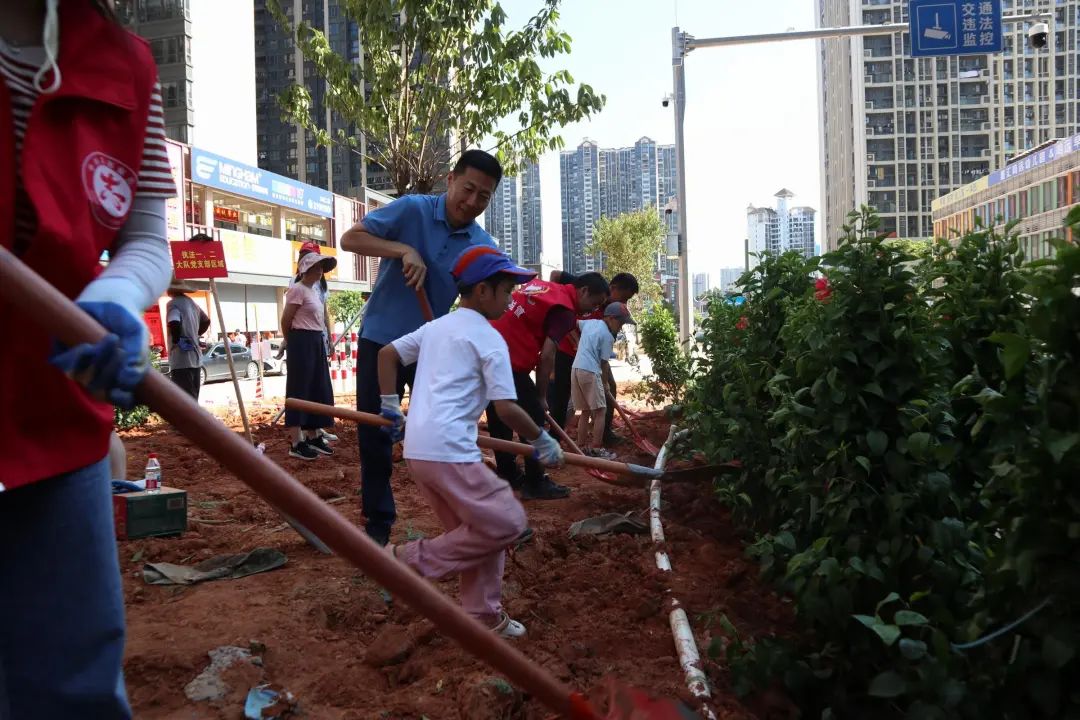 小学一年级的陈奕飞小朋友擦着额头的汗水说:“这是我第一次参加种绿植活动,能和妈妈一起埋土、浇水,特别有意义。我听叔叔说新种的凤凰木开花时特别好看,现在累一点也值了!还有亲手种的大红花,我希望它快点长高,让社区周边和咱们的家园越来越美。”
