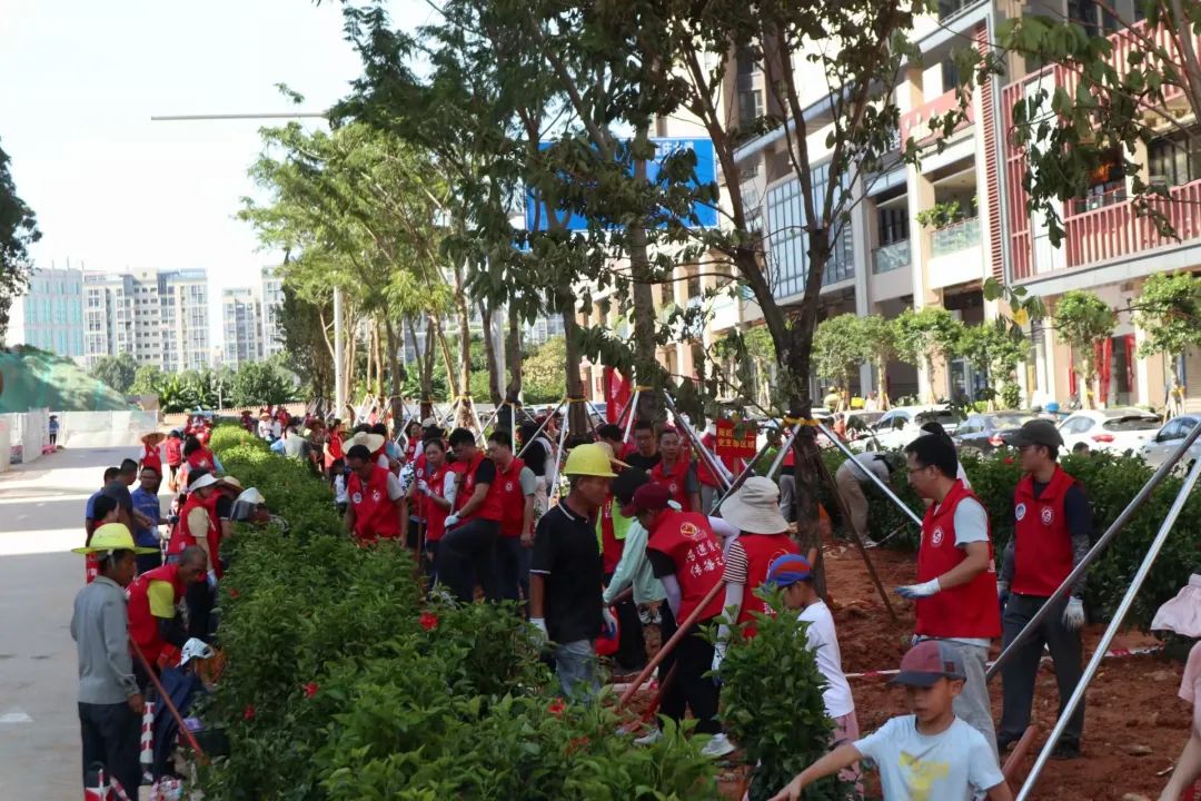 经过一个多小时的齐心协力,凤凰木、大叶紫薇和大红花在绿化带中整齐排列,像绿色哨兵一样挺立,为盛夏的城市增添了一份清新的生机。据统计,本次植树活动共栽种凤凰木、大叶紫薇16棵,大红花灌木510株。