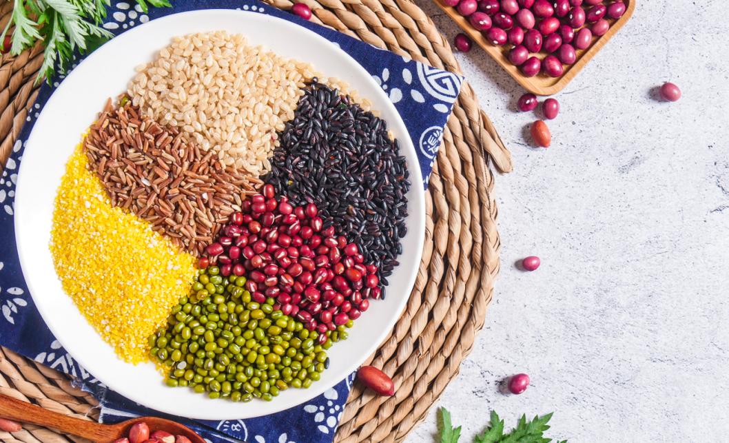 每日主食中,建议包含一种“米”(如紫米、小米)、一种“麦”(如燕麦、藜麦)、一种“豆”(如红豆、绿豆)和一种 “薯”(如红薯、紫薯)。