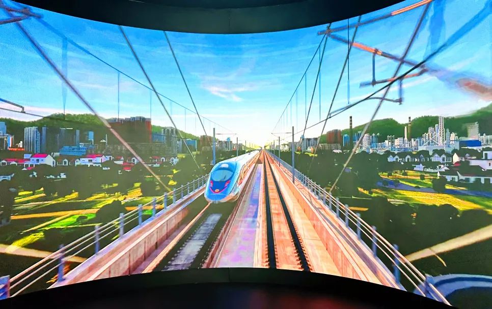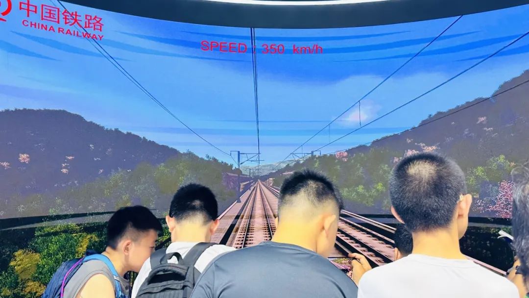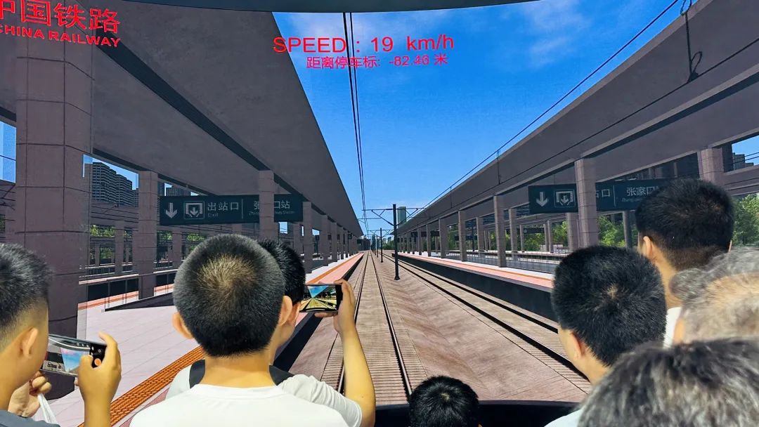 只需按下按钮,再推动手柄就能启动列车。这时,巨幕中的风景会迅速后移。亲自驾驶着复兴号动车组列车,以350公里的时速飞驰,那场面别提多酷炫了。