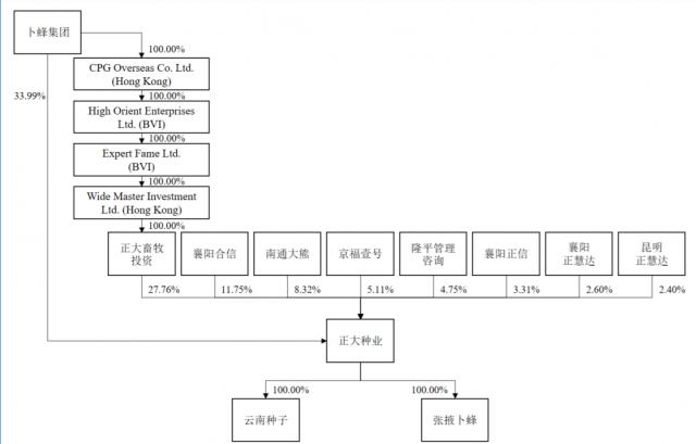 截至本招股说明书签署日,卜蜂集团直接持有公司4900万股股份,持股比例为33.99%;正大畜牧投资直接持有公司4001.14万股股份,持股比例为27.76%。正大畜牧投资为卜蜂集团控制的企业,与卜蜂集团构成一致行动人。因此,卜蜂集团为公司的控股股东。