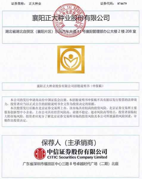 瑞财经王敏报道,6月30日,襄阳正大种业股份有限公司(以下简称“正大种业”)北交所IPO获受理,保荐机构为中信证券,保荐代表人为李良、吴博申,会计师事务所为毕马威华振。