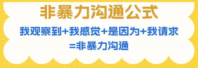 我观察到 + 我感觉 + 是因为 + 我请求 = 非暴力沟通。