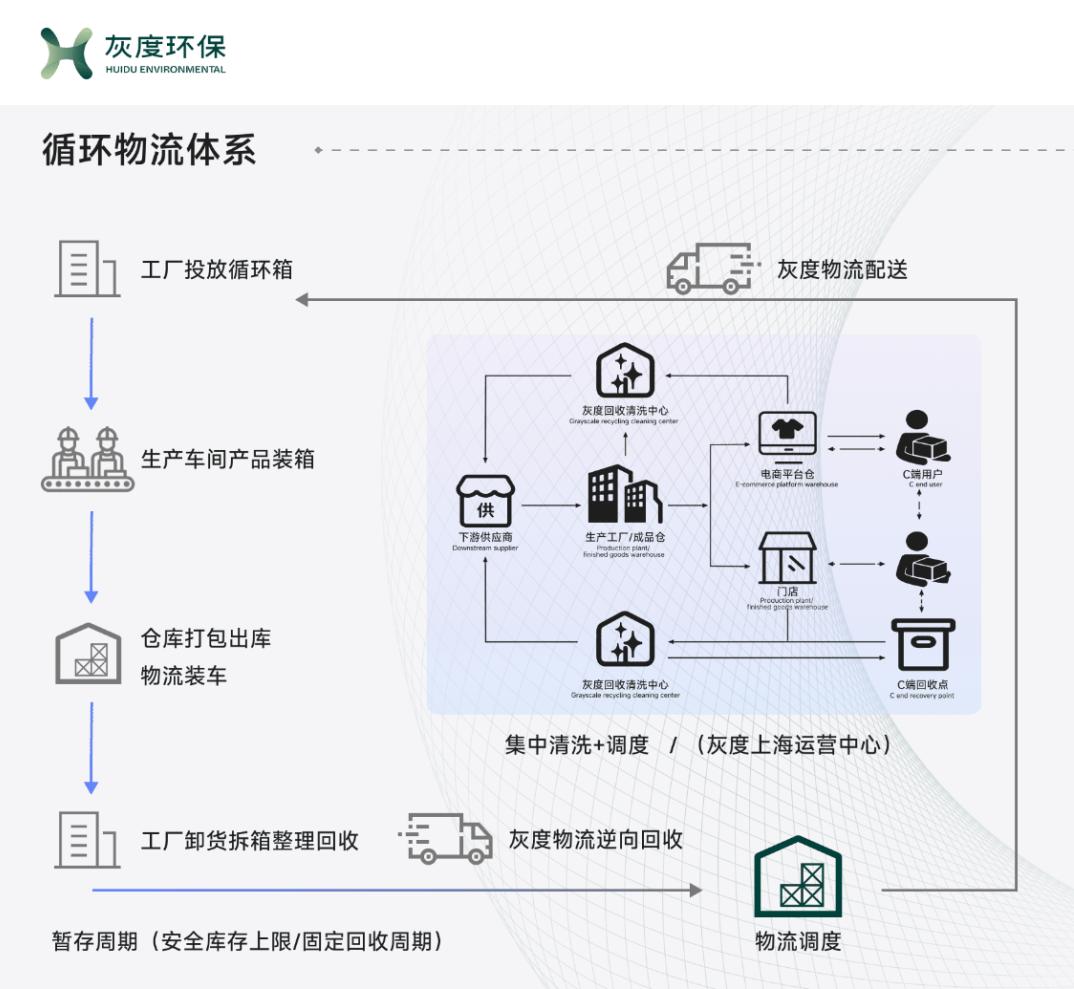 灰度环保首款产品用可再生材料,坚固耐用且可100%回收再利用,吸引了资本关注,多轮融资为全国网络铺设提供资金。借助商业基础,灰度环保搭建“中心仓 + 卫星仓”运营网络,全国投放超1000万只循环箱,累计完成2亿次循环,减少碳排放约16万吨。其“金字塔式回收模型”以大B端客户为支撑,向社区末端渗透,通过为箱体配置“身份码”实现全流程追踪,控制损耗率。