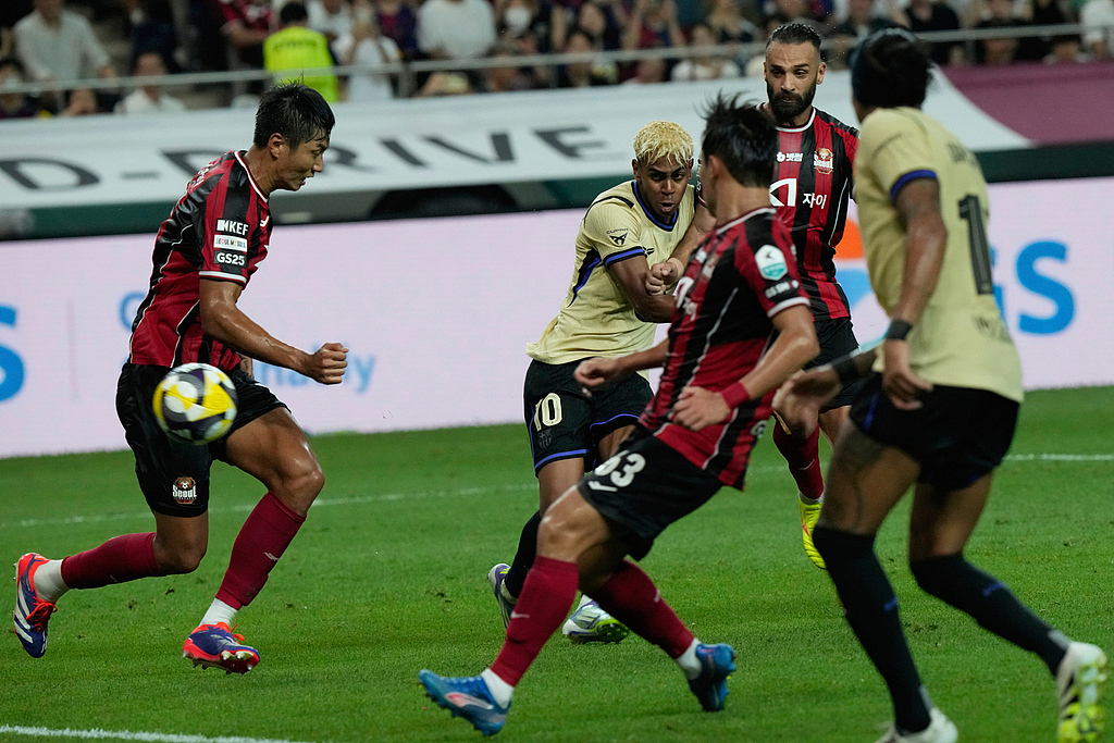 亚马尔如入无人之境。巴萨7比3首尔,亚马尔双响
