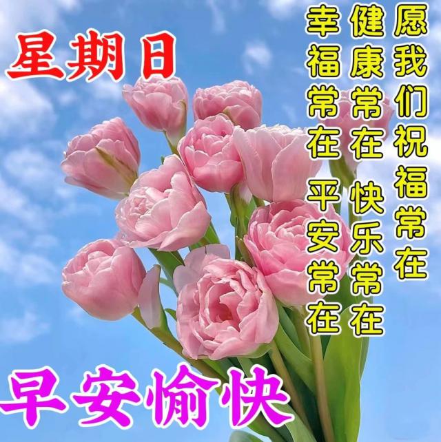 周日早安!一天中最美好的时光就是早晨,愿幸福如春雨般洒落你的心房,快乐似春风般飞到你面前,健康像清泉般滋润你的心田。让这小小的空间传递我真诚的祝福。祝你健康、平安、快乐、幸福!