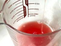 将西瓜榨汁,滤出汁水,撇去浮沫,放一旁备用。取10g吉利丁片放温水中融化,加入西瓜汁中搅拌均匀,放入冰箱冷藏1小时。