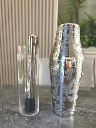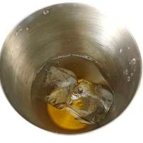 大力摇晃,使雪克杯表面结一层薄霜,将混合后的饮品倒入杯中,用薄荷点缀装饰。简单又酷炫的饮品就制作完成啦!