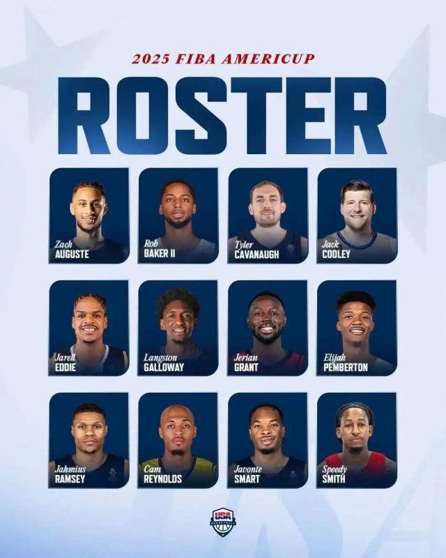 再看美洲杯,最受关注的美国男篮对这次比赛并不重视。他们派出的阵容里没有现役NBA球员,而是由海外效力的职业球员、学生球员以及前NBA球员组成。大名单如下: