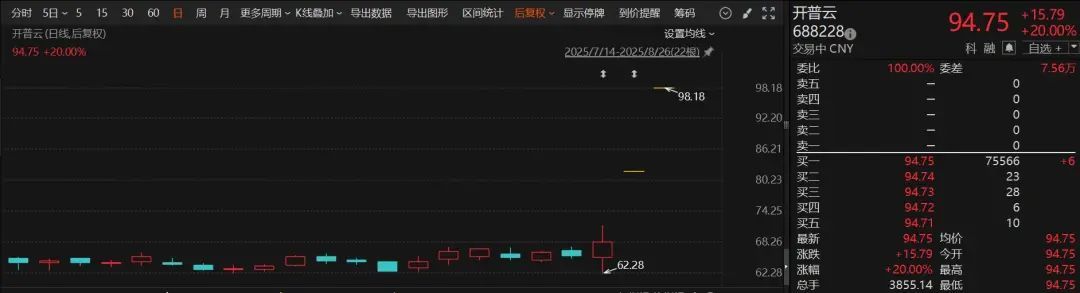 开普云今日再次20cm涨停,股价报94.75元/股,市值63.97亿元。8月24日晚间,开普云披露重大资产重组预案,公司拟收购南宁泰克,新增存储产品相关业务,此次交易预计构成重大资产重组。开普云的股票于8月25日开市起复牌。