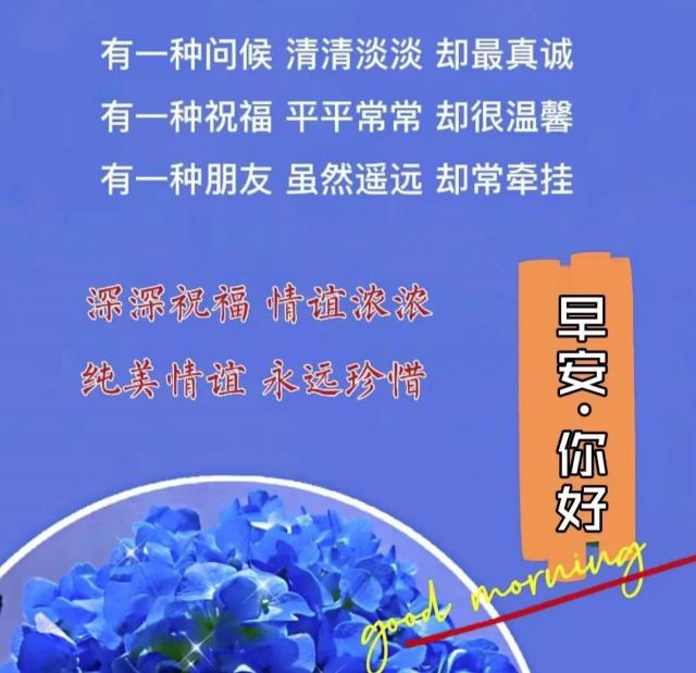 每天的笑声,如同阳光般温暖身心;每天的快乐,好似星辰般闪烁生活;相互的问候,犹如清风般吹散烦恼;真诚的情谊,宛如磐石般坚定友谊之路。早上好!