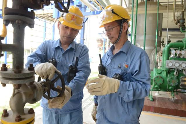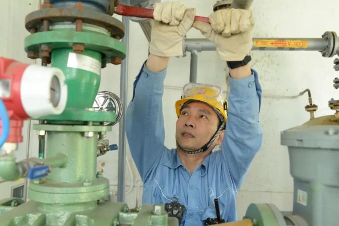 在今年新推行的实操培训环节,他会根据评分细则认真备课,总结37年的操作心得和诀窍,将理论与实操结合,帮助班组成员提升技能。夏季开工时,高温环境下他仍坚持核对现场仪表参数与操作室数据,展现出高度的职业专注力。他的工服常被汗水浸透,但依然专注排查泄漏点,践行着“脚踏实地”的座右铭。他的坚守让他成为团队的“定盘星”。