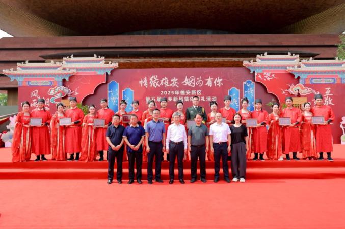白洋淀的潋滟水波见证新人们的爱情誓言,雄安新区的蓬勃发展祝福着他们的美好未来。这场在七夕举办的集体婚礼,凸显雄安特色水乡文化,引导雄安青年践行低彩礼、零彩礼,推进移风易俗、简约婚礼新风潮。集体婚礼是雄安新区婚俗改革的重要举措,旨在为新区建设营造“有厚度、有温度、有深度”的婚俗文明新风。