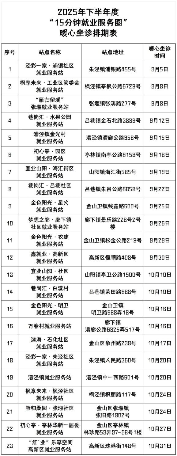 2025年下半年,金山区职业指导“暖心坐诊”服务再次启动,陪你一起攻克求职难关、突破职场困境!