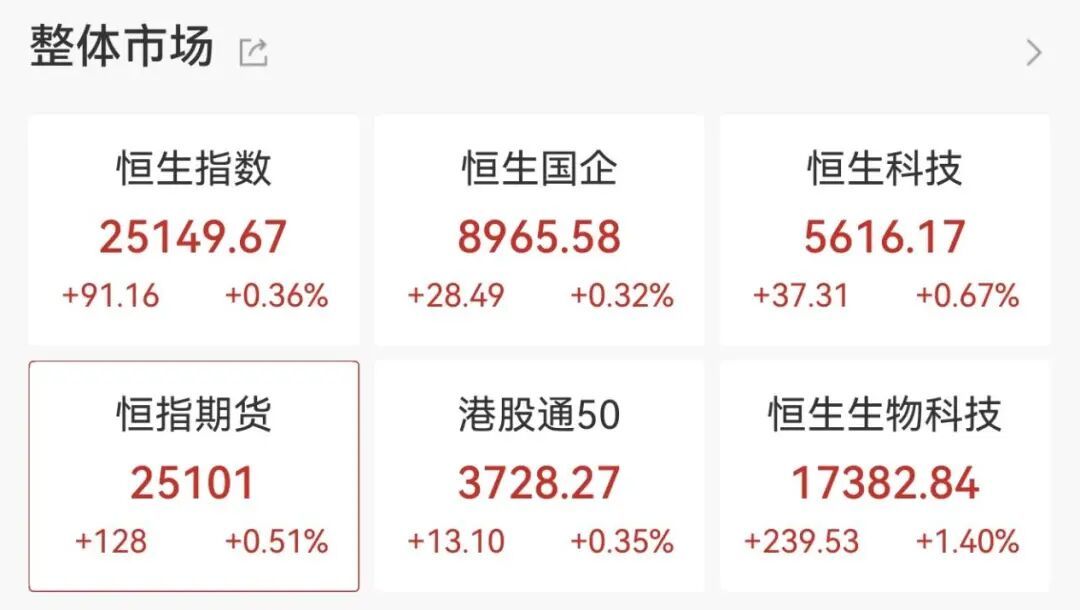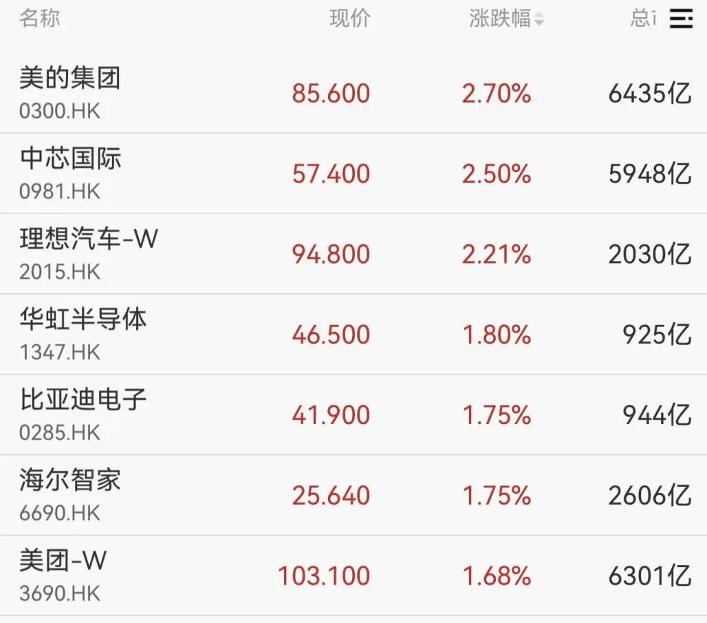 港股方面,三大指数震荡拉升,美的集团、中芯国际、理想汽车涨幅均超过2%。