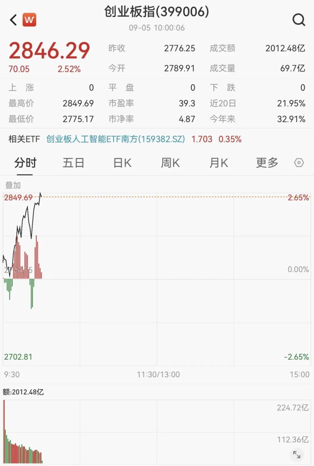 9月5日开盘,A股三大指数涨跌情况不一,随后集体开始拉升。截至发稿时,沪指上涨0.04%,深成指上涨1.42%,创业板指上涨2.55%。