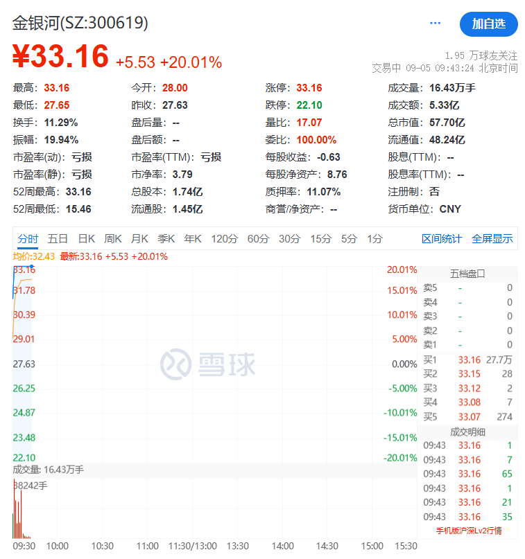 固态电池概念股集体走高,其中金银河开盘1分钟就实现了20%涨停,先导智能、信宇人涨幅居前,丰元股份也涨停。