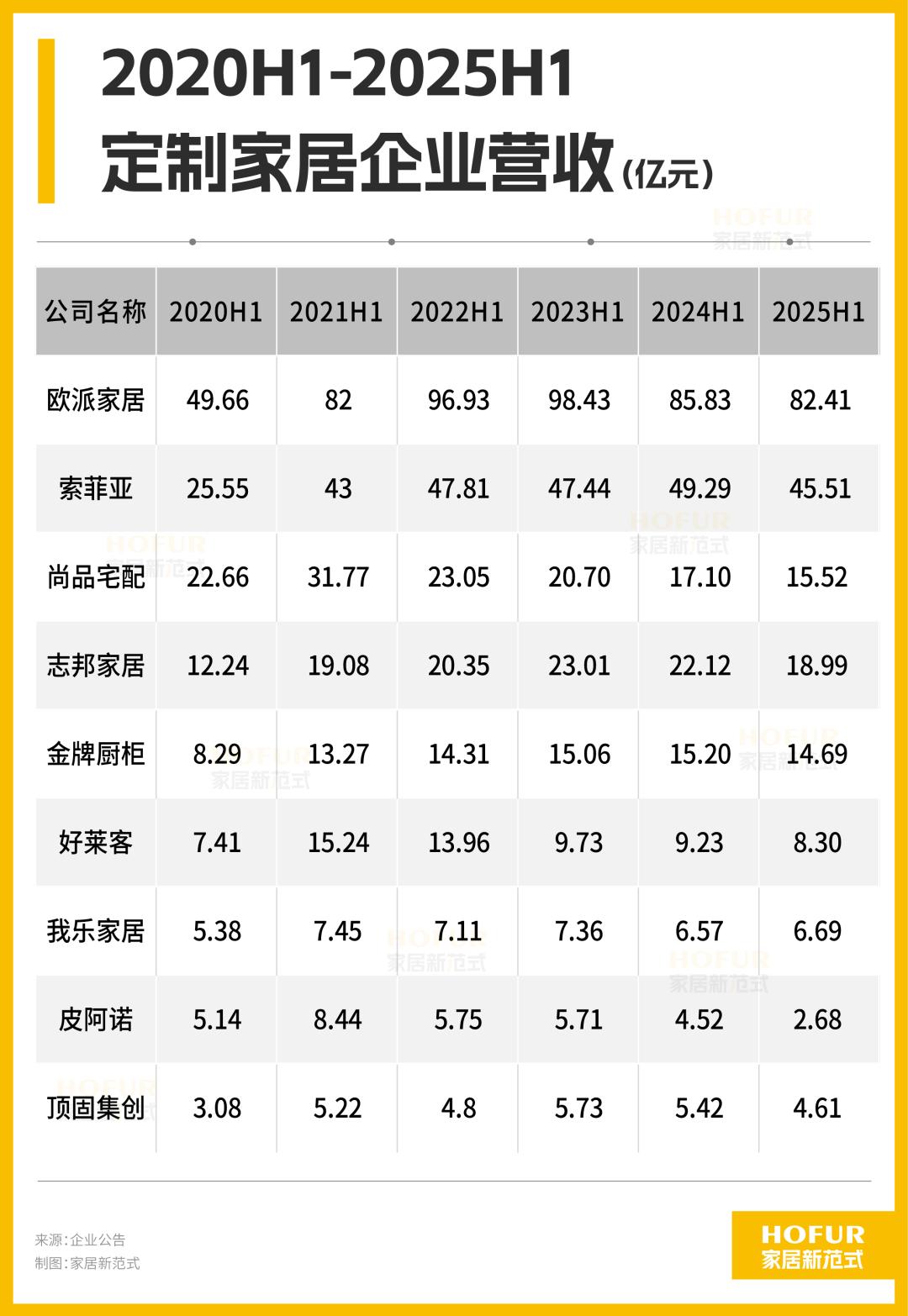 家居新范式梳理10家上市定制家居企业2025年半年报显示,在营收规模方面,欧派家居实现营收82.41亿元,而皮阿诺和玛格家居仍面临较大经营挑战。