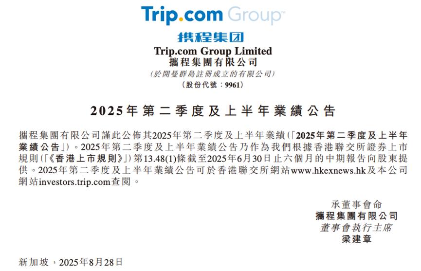 2025年8月28日,携程集团披露2025年第二季度财报,营收148亿元,同比增长16%;归母净利润48亿元,同比增长26%。携程首席执行官孙洁称,“第二季度业绩体现了旅游市场的强劲韧性和我们把握结构性机会的能力。”