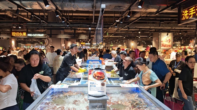 与此同时,一年一度的东海开渔季也如期到来。永辉源头直采团队奔赴吕四港、连云港等重要港口,直发今年秋捕第一网海产。门店水产区主打“开海直供”梭子蟹,确保顾客享受到新鲜直达的海洋风味。