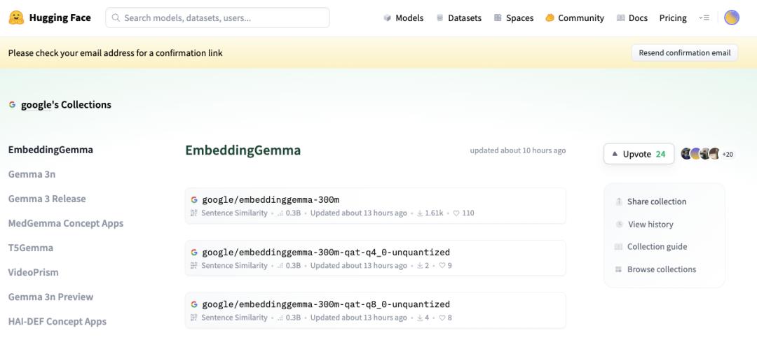 Hugging Face地址: https://huggingface.co/collections/google/embeddinggemma-68b9ae3a72a82f0562a80dc4
