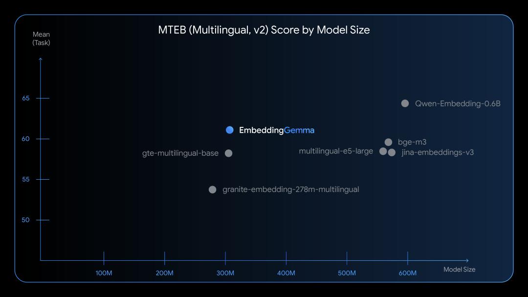 谷歌开源0.3B新模型EmbeddingGemma,小身材大能量,手机断网也能跑