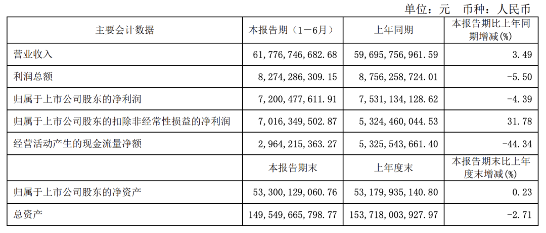 (伊利半年报业绩,来源财报)