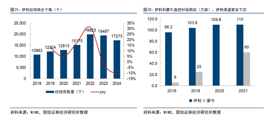 (伊利蒙牛村镇级终端数量,来源Wind、国信证券)
