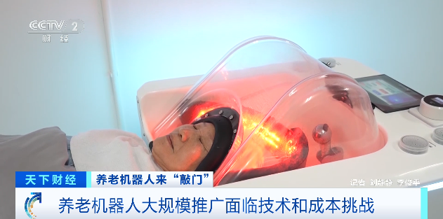 在深圳的另一家养老护理院,智能机器人随处可见:巡逻机器人在院内巡逻;洗发机器人为老人洗发;在康复理疗室,一台理疗机器人能精准定位穴位,用机械臂给老人艾灸。记者走访发现,越来越多的养老院开始引入智能机器人进行场景验证,产业进入加速落地阶段。