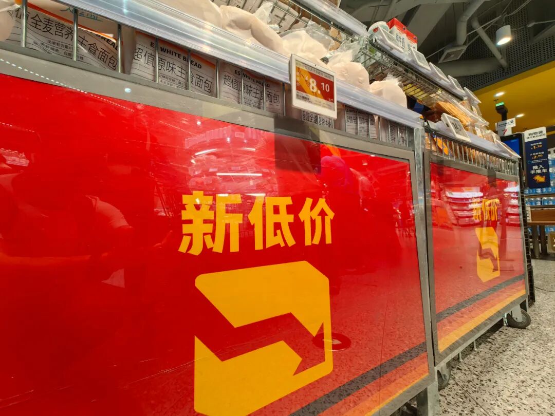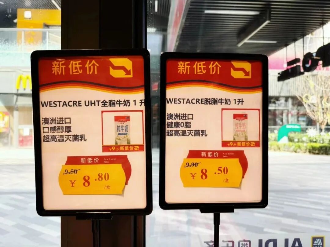 《联商网》在奥乐齐上海黄浦凯德晶萃店看到,货架及电子价牌上,都鲜明地标注着“新低价”字样,相关单品吸引了众多顾客的关注。