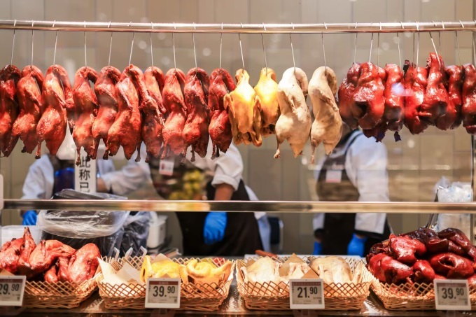 熟食烘焙是调改的重点。熟食区新增了甜肠、麻辣牛肉条、香辣/五香猪蹄、寿司、椒盐皮皮虾、蒜蓉粉丝蒸生蚝、捞汁小海鲜、龙虾包子、芜湖红皮鸭、锅包肉、卤鹅、手撕鸡、手工披萨、大肉包等,现制现售,充满烟火气。烘焙馆主打“鸭子的奶”、山茶花吐司、榴莲千层、丰收的喜悦、核桃满满、榴莲大福等高人气单品。