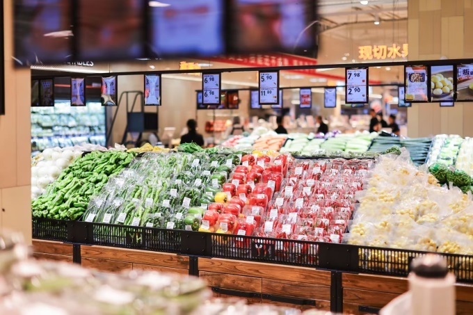 在生鲜蔬果方面,引入了“芸岭”有机蔬菜系列,有玉米笋、吮指胡萝卜、芹菜等;还有永辉定向种植的贝贝南瓜、鲜食玉米。应季高端水果引入了西梅、“恐龙蛋”李子、无核白葡萄、火焰红葡萄、冰糖冬枣、哈密瓜等多款新疆特色水果,打造了“果园到餐桌”的生鲜体验。