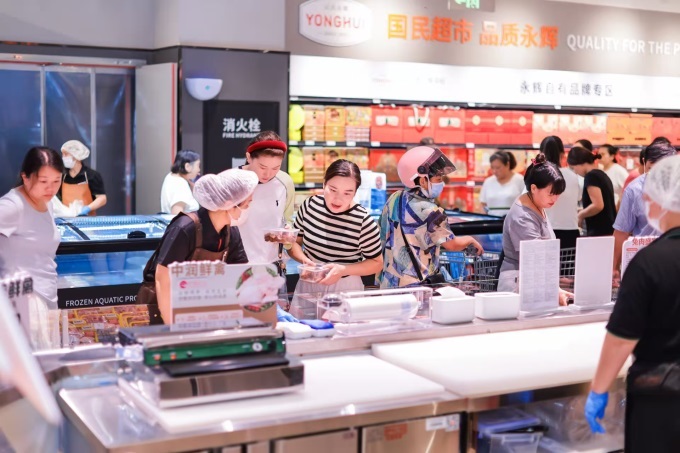 调改以提升商品力为核心,对原有的13677支商品进行了全面优化。下架了9712支同质化单品,新增6235支差异化商品,上新率超过61.1%。调整后商品池总量为10200支,商品结构达到胖东来标准的80%,进口商品比例大幅提高,烘焙、熟食等鲜食品类占比从7%增加到13.1%。