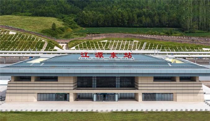 “淳朴典雅,满城新韵”。江源东站蕴含满族建筑风格,用现代手法诠释,表达历史文化内涵和城市精神。