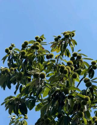 提着竹篮,走进所前满是丰收景象的栗子林,亲手打下浑身带刺的青栗,弯腰捡起悄悄开口的褐栗。