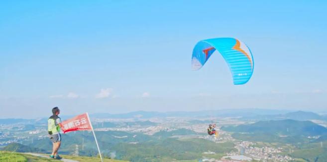 还可以登上云石去乘坐滑翔伞,翱翔在群山之上,将萧山的田园、村落和连绵山色尽收眼底。
