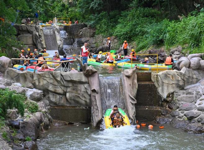 走进河上青山环绕的“龙出没”探险漂流,乘船疾驰而下,在水花与欢呼中唤醒全身感官。