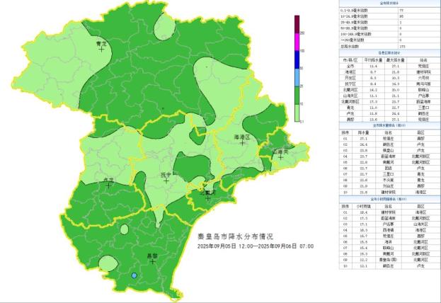 雨情快报!9月5日12时 - 9月6日07时秦皇岛降雨详情