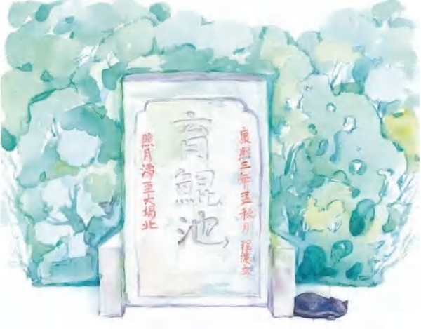 我在村子待了几天,对各类鱼都进行了采集观测,返程时,除了肯氏鱊和石台鳑鲏外,其他鱼都就地放生了。这次只是简单探寻,水域中应该还有生活隐秘的鱼种。在这里,除了水和鱼,让我感慨的是村口石碑上刻着的三个字:“育鲲池”,旁边还写着年份康熙三年立。