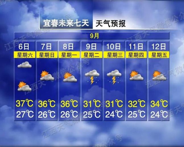 从9日开始,气温会略有下降。以宜春为例,气温将下降6℃。