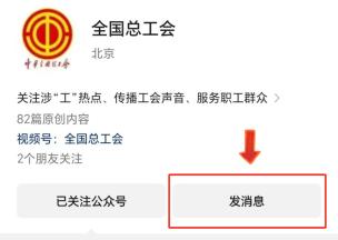1第一步:关注全国总工会微信公众号,点击【发消息】。