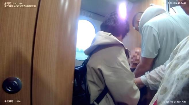 段转娣询问家属得知,张先生做过心脏造影。与此同时,列车红十字救护员梁静也抵达现场对旅客进行救助。