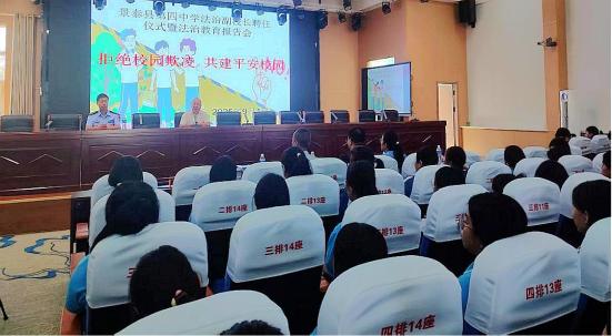 9月1日,景泰县法院执行局法官助理以新聘法治副校长身份走进景泰县第四中学,为同学们带来一堂紧扣校园安全与法治教育的“开学第一课”。(详情点击:撑起法治“保护”伞 护航“花季”成长路 ——景泰县法院法治进校园系列活动纪实)