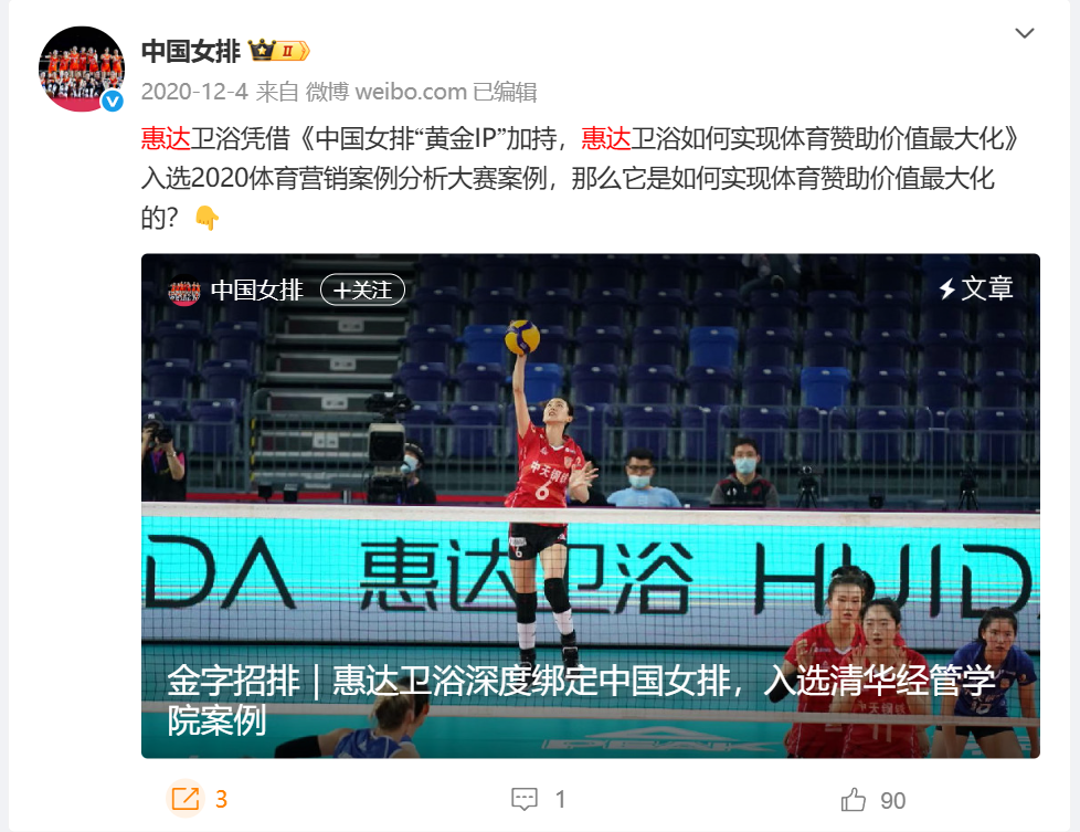 值得一提的是,惠达卫浴曾是中国女排官方赞助商,但2021年12月30日以后,中国女排官微再未提及该品牌。