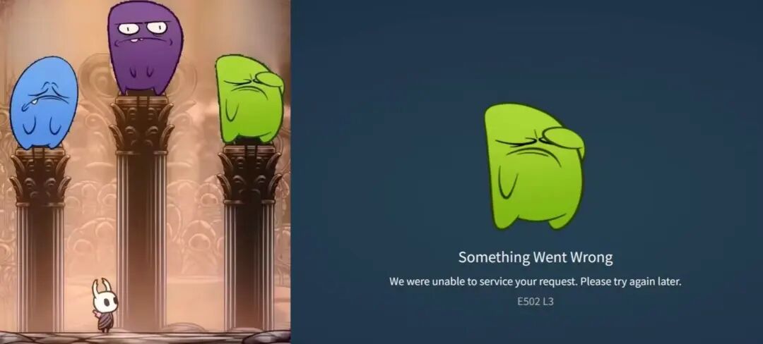 玩家玩梗源于对《空洞骑士》的高度认可。上线前,《丝之歌》的定档让多家游戏厂商调整宣发节奏。上线后,其热度尽显,游戏未开启预购,玩家现买现玩,导致Steam服务器因大量玩家涌入下单而崩溃,Switch、Xbox等主机平台服务器也未能幸免,不少玩家卡在付款界面。