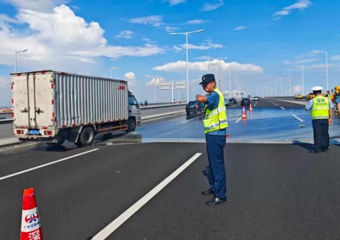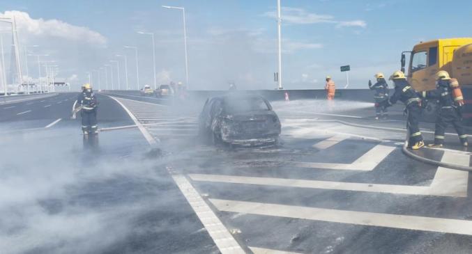 路网调度中心迅速行动,立即通知交警、路政、拯救、养护、消防、急救等部门前往处置,同时启动深中通道管理中心火灾事故专项应急响应。还同步在情报板发布事故提示信息,利用广播系统播放安全提示信息,提醒过往车辆注意安全。